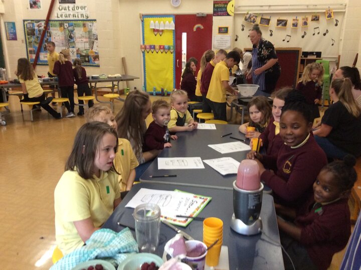 An afternoon of exploring healthy snacks, fruit tasting, making cookies, designing and making smoothies and trying fresh carrot and apple juice. The children loved it so much that they would like smoothies and fresh juice every breaktime!